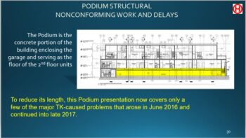 The contractor placed 300,000 sf of suspended post-tensioned concrete decks, which failed to satisfy the contractual requirements for slab finish, flatness, and levelness.